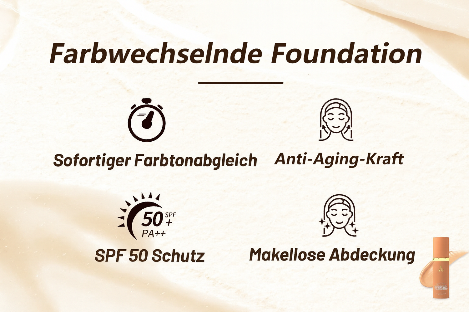 Stimmten zu, dass die farbanpassende Foundation ein natürliches, strahlendes Finish hinterlässt, ohne die Poren zu verstopfen, und Hautunreinheiten oder Reizungen reduziert.